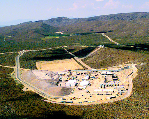 The proposed Yucca Mountain Deep Geologic Repository (YMDGR) would exist in a mined repository 984 feet (300 meters) underground “in an unsaturated layer of welded volcanic tuff rock.” For nuclear waste containment, it would rely on “the long-term durability of engineered barriers” and the site’s “extremely low water table,” which lies nearly 1970 feet (600 meters) beneath the surface. (World Nuclear Association 2020 Mar).